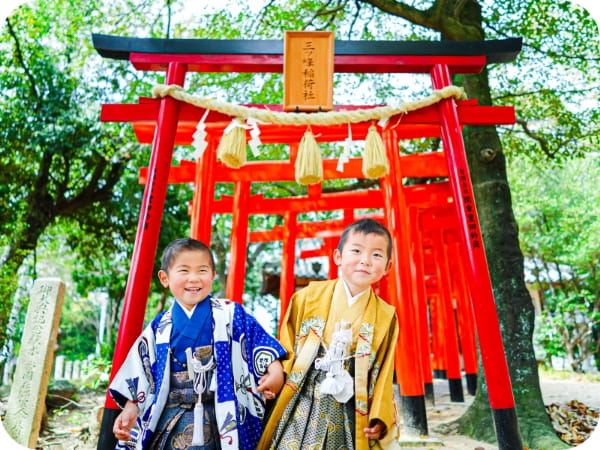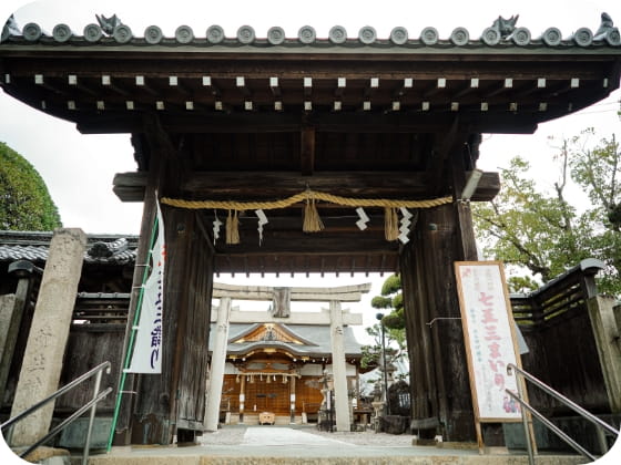 日本武尊が護祭神であり、とくに防災雨祈の祈願社としてその名が知れ渡り全国からお詣りに来るほど有名な神社です。秋のだんじり祭りやお正月にたくさんの屋台が並びます。七五三シーズンも多くの人がご祈祷に来られます。そのため早い時間の撮影がおすすめです。