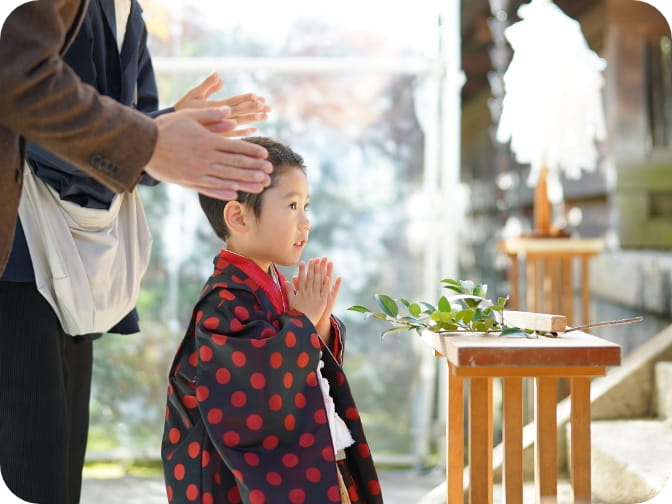 - 神社へのお詣り当日にカメラマンが神社へ出張してお詣りの様子を撮影します。